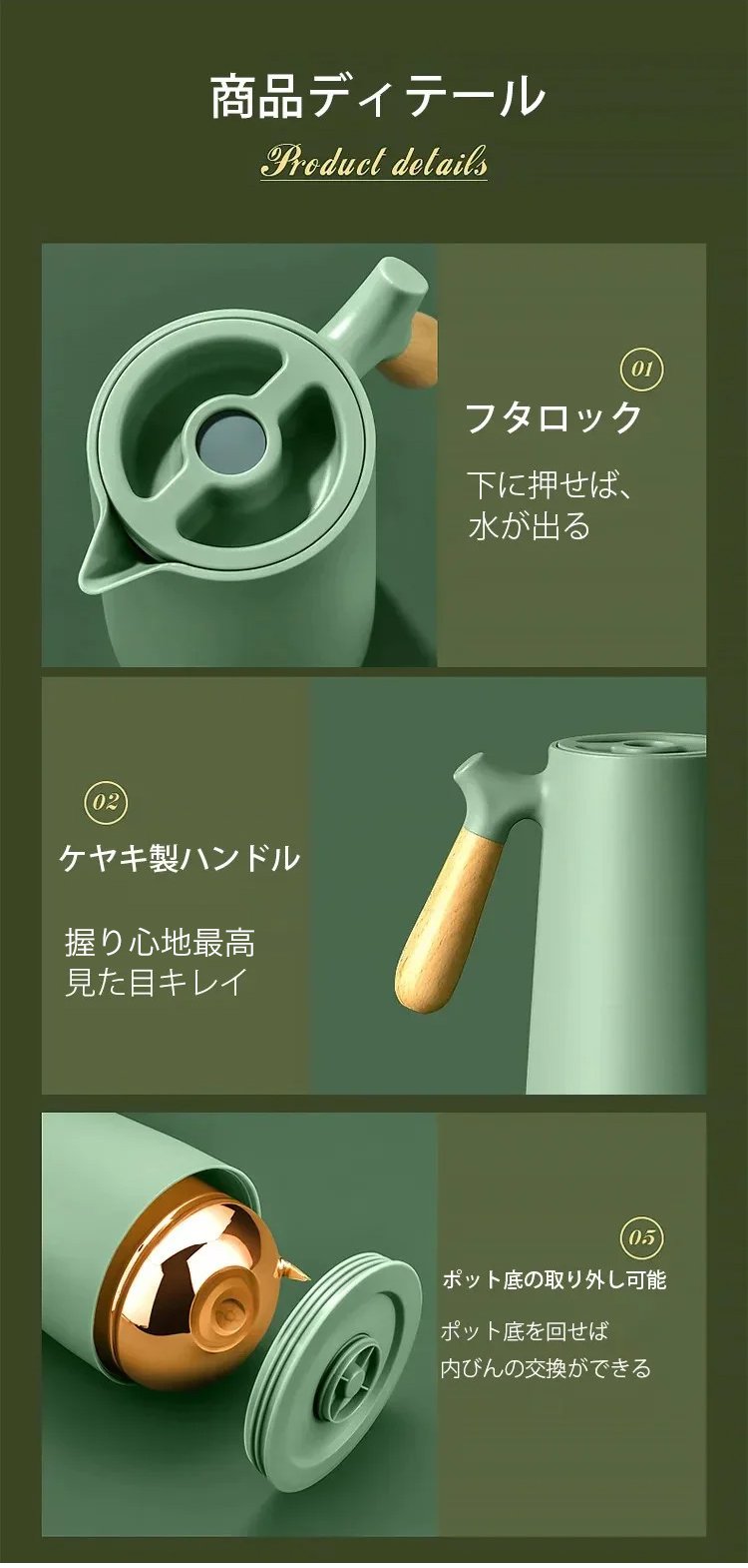 保温ポットの持ち手と注ぎ口のクローズアップ
